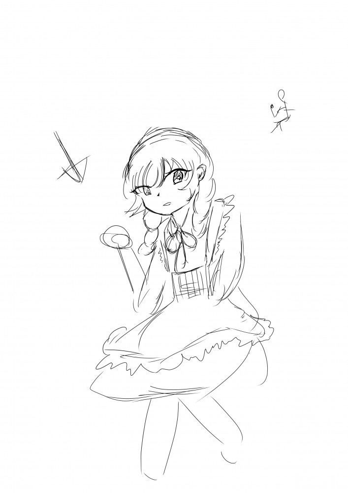 ポーズ変更しながら線画の途中