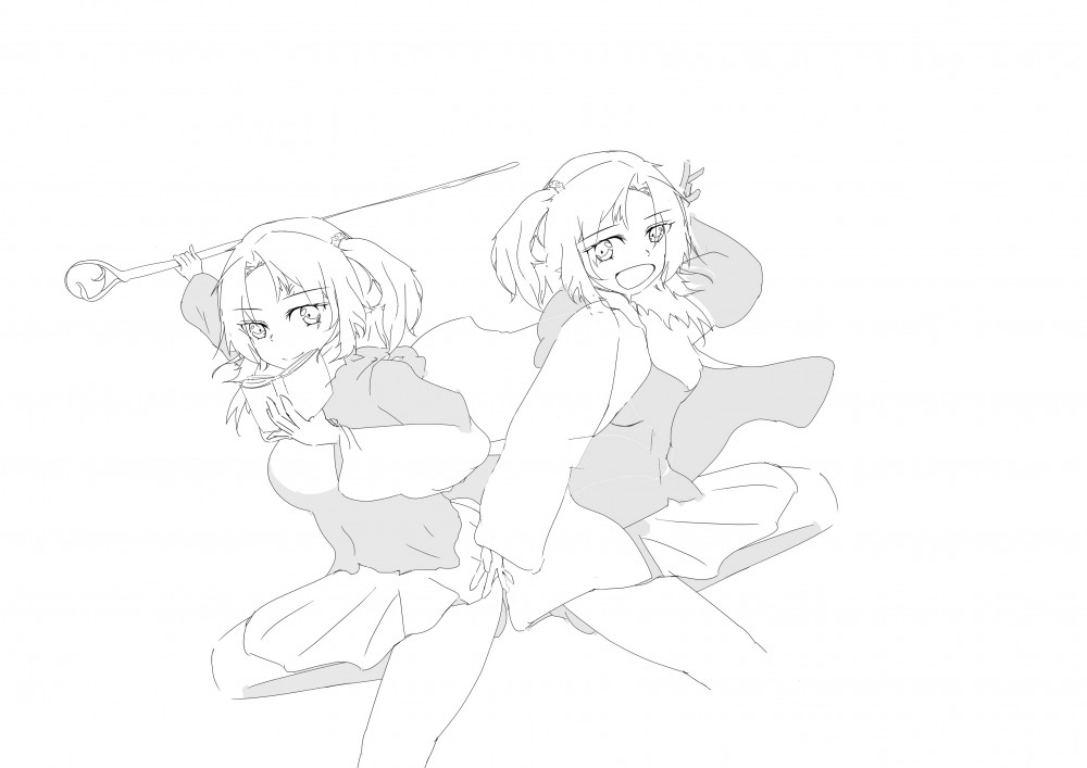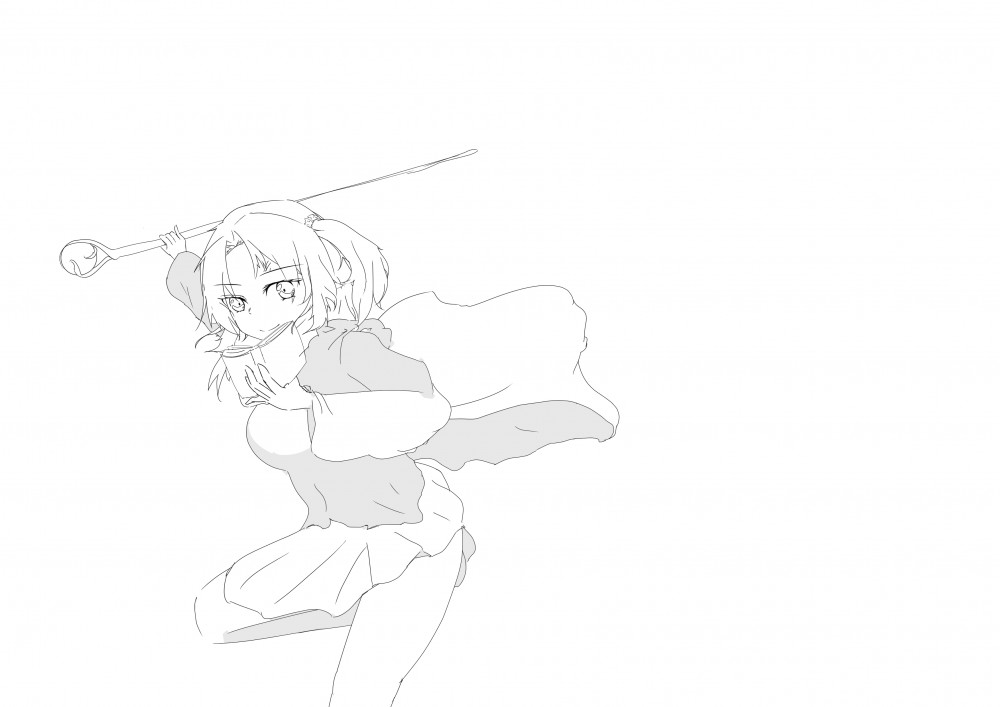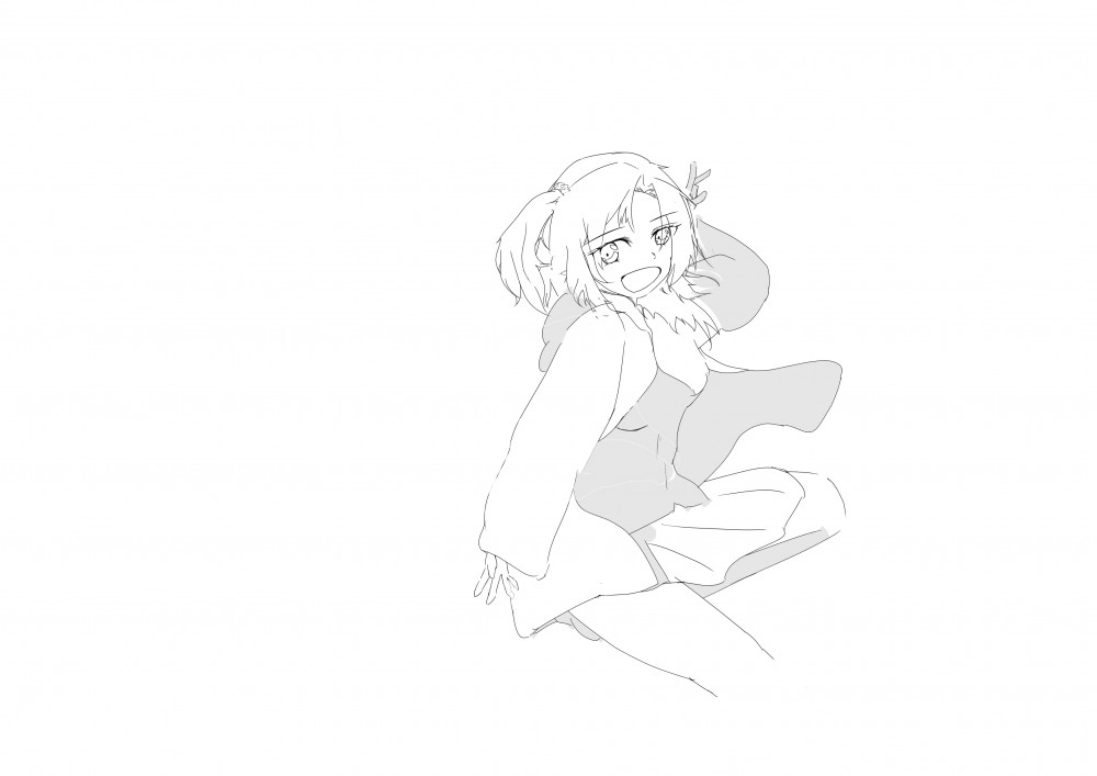 ↓顔まで描いてちょっとポーズ変更しようと思い試行錯誤中