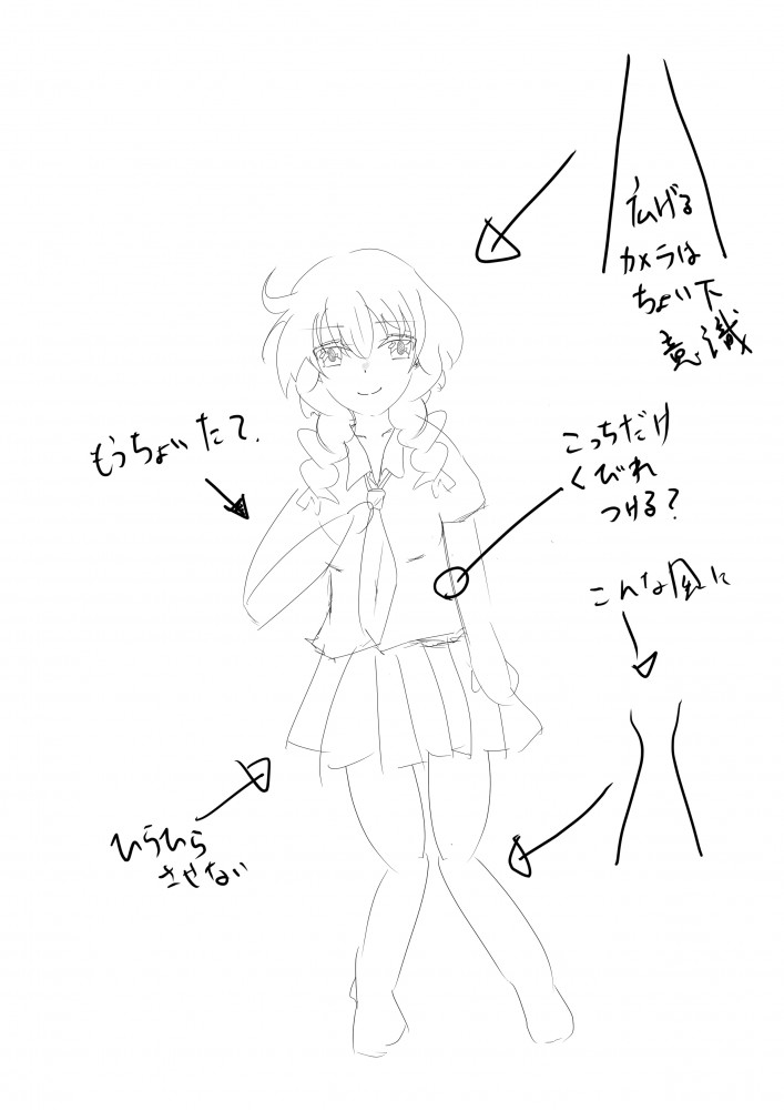 ↓ポーズ変更して書き直した線画