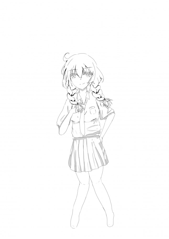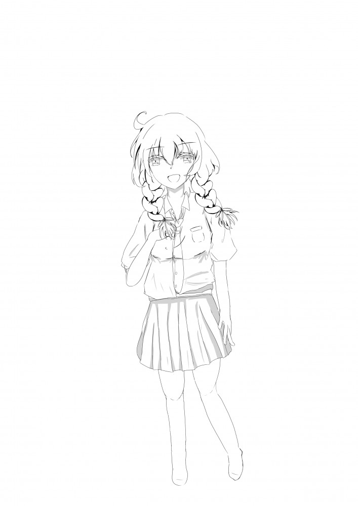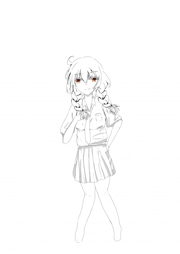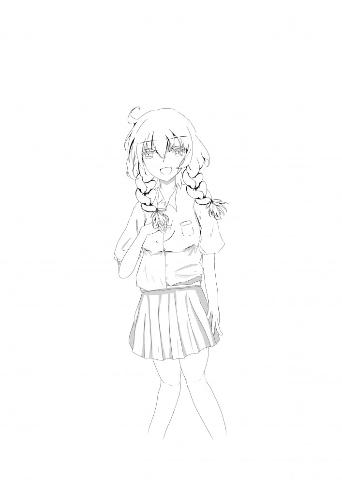 ↓サイドに三つ編みで確定して線画