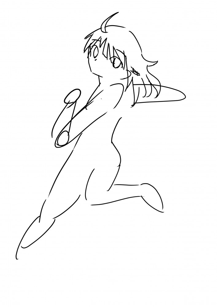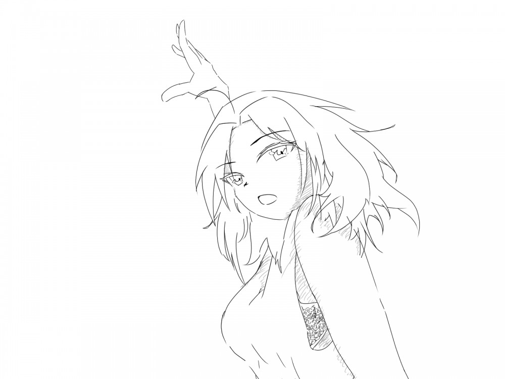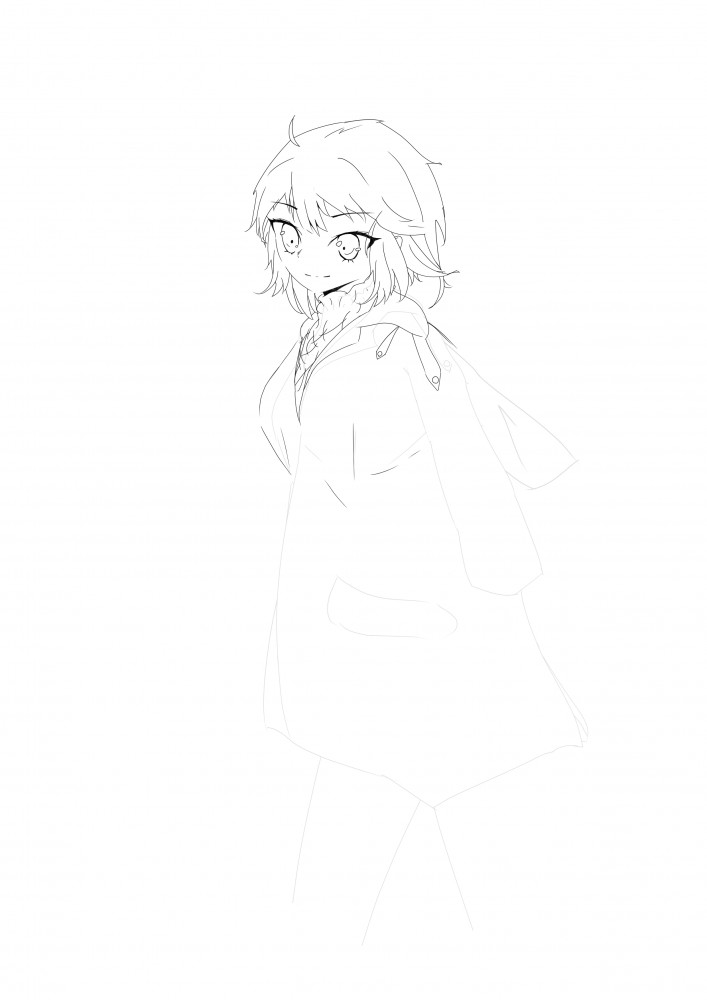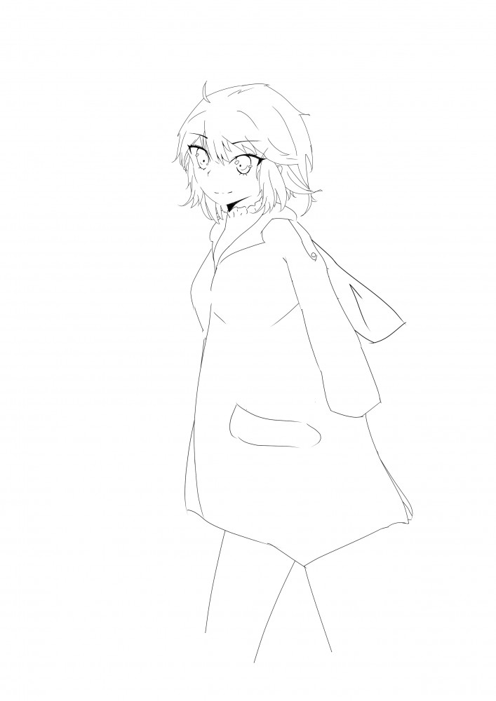 ↓顔線画完成と体の下書き
