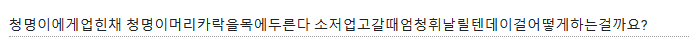 - 목에 두른다..?! 넘 충격적인 상황이에요 8-8 그러고보니 휘날리는 머리는 생각해본적 없었는데 한번 생각해봐야할 것 같아요 저는 그냥 옆쪽으로 날리겠거니~ 했는데 익명님이 주신 의견을보니 아닐수도 잇을 것 같고?!