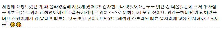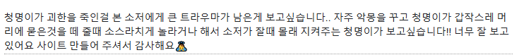 - 의견 감사합니다! 트라우마가 남는 것도 넘 좋아요.. 주인공을 위해 조심조심하는 청명이두