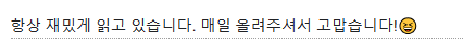- 재밌게 봐주셔서 저야말로 정말 감사합니다 덕분에 매일 와보려고 노력하구 있습니다 화이팅해볼게요