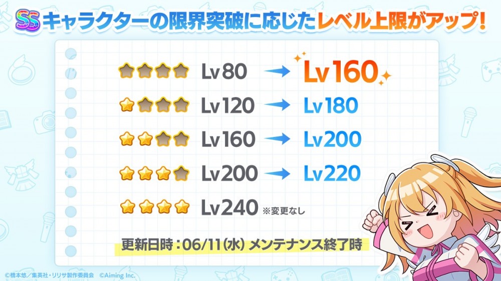 2025/6/11のメンテから、SSの凸に応じたレベル上限が大幅にアップしたよ!