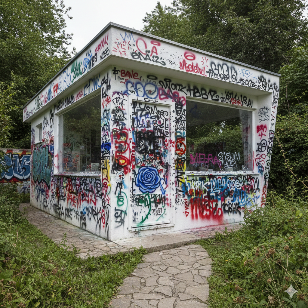 (出てきたのは、禍々しい落書きだらけの家。)