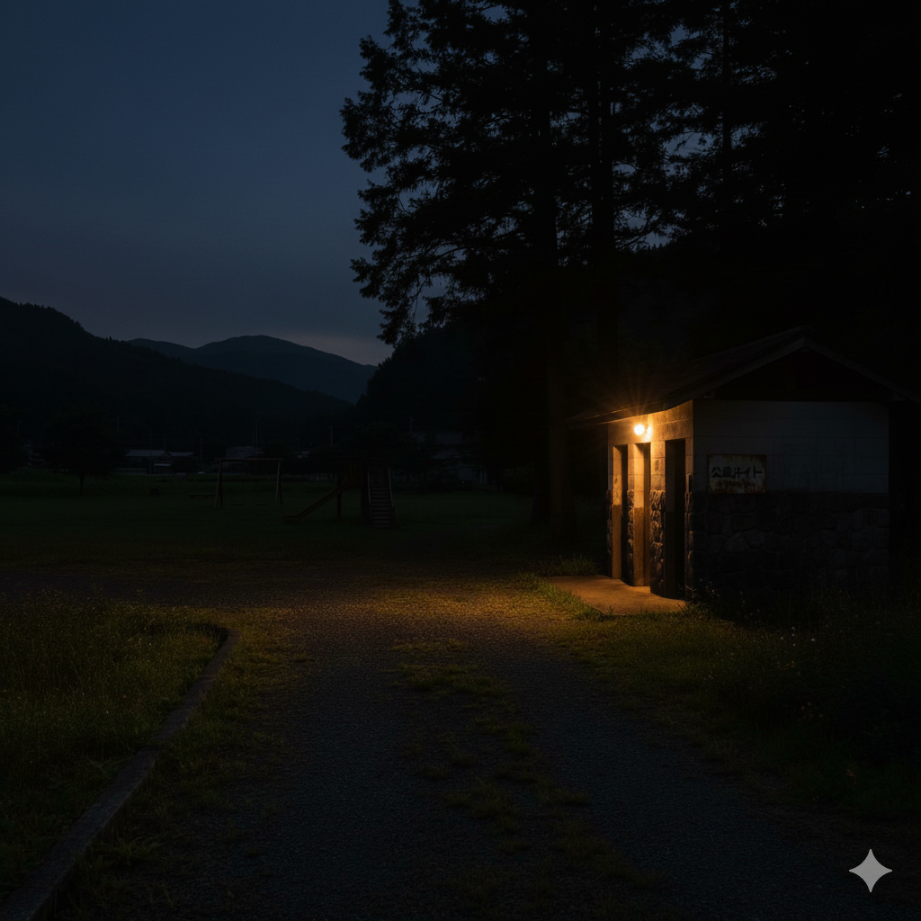 (夜中の公園に来た。暗い、怖い、寒い。)