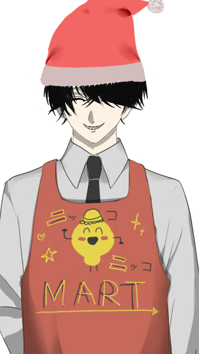 (お店に行ってみると、サンタ佐藤発見!帽子が大きいのか、髪の毛がぺちゃんこになり、目隠れ系になっている...)