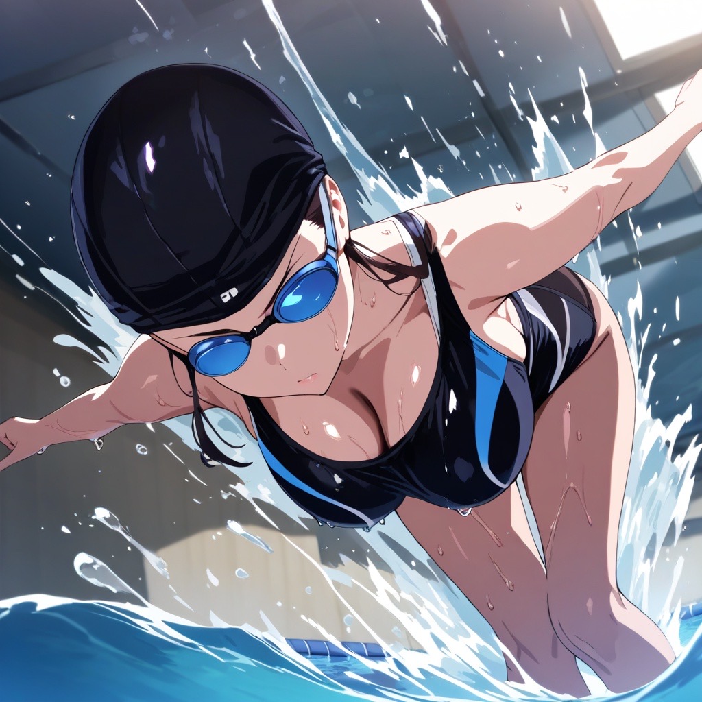 (プール全体を震わせるパワフルな泳ぎ!まるでトビウオ……)