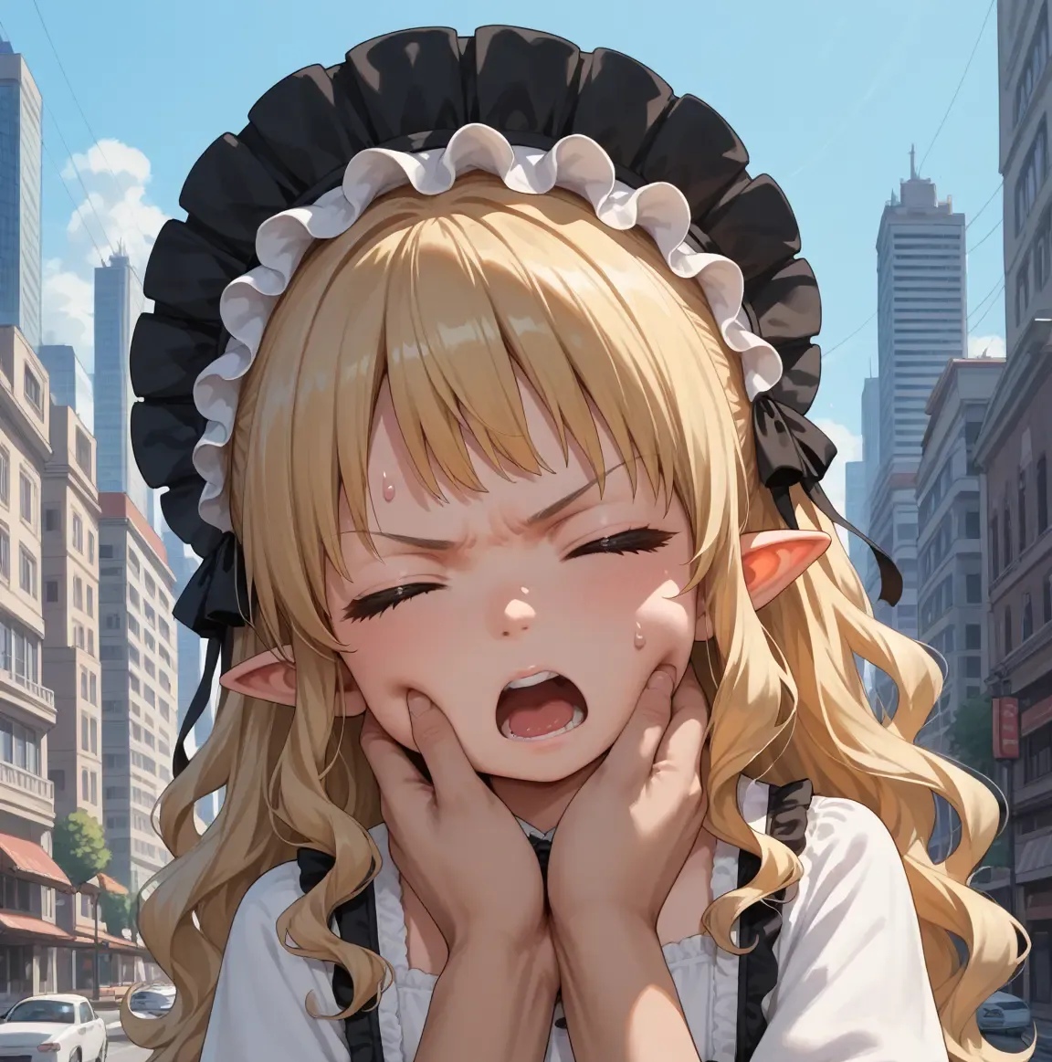 頬を引っ張る