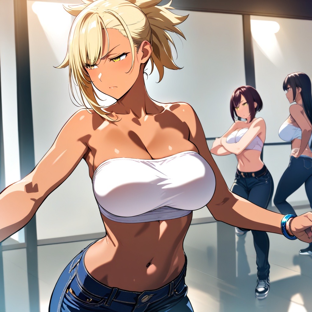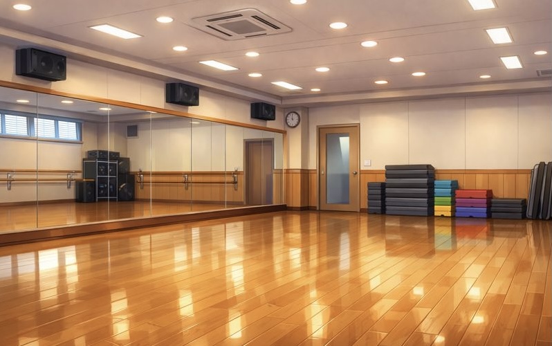 (──放課後のダンス室は、鏡に反射する光と軽快な音楽で満ちていた)