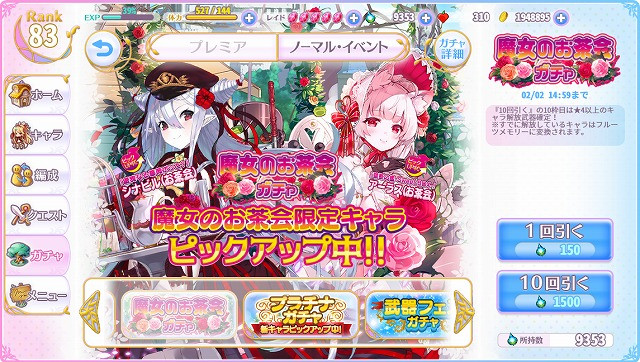 というわけでクシャルをすっとばしてお茶会ガチャ後編をご覧ください。