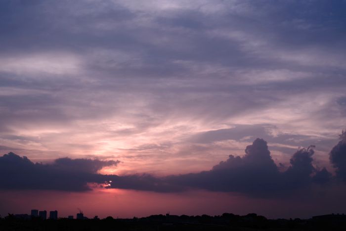 (顔を上げると、眼前に暮れて行く空がいっぱいに広がっていた)
