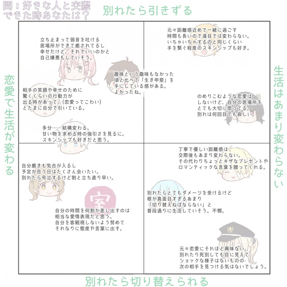 元々他者と交流しないキャラ程変化が大きそう。